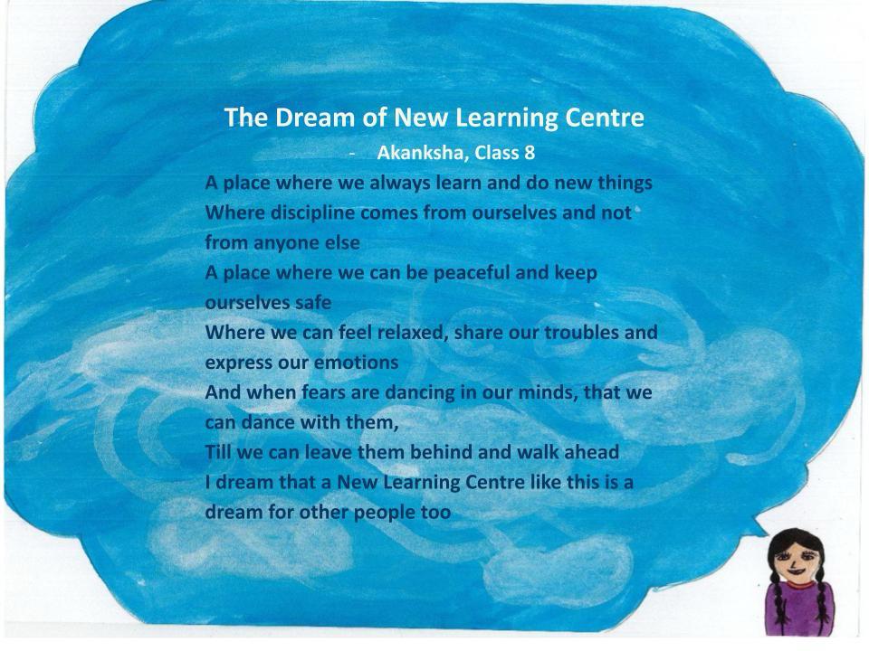 We hope to build workable practices to address these questions. As the powerful words of one of our students reveals, at New Learning Centre, students and teachers are reclaiming the transformative power of education, everyday.